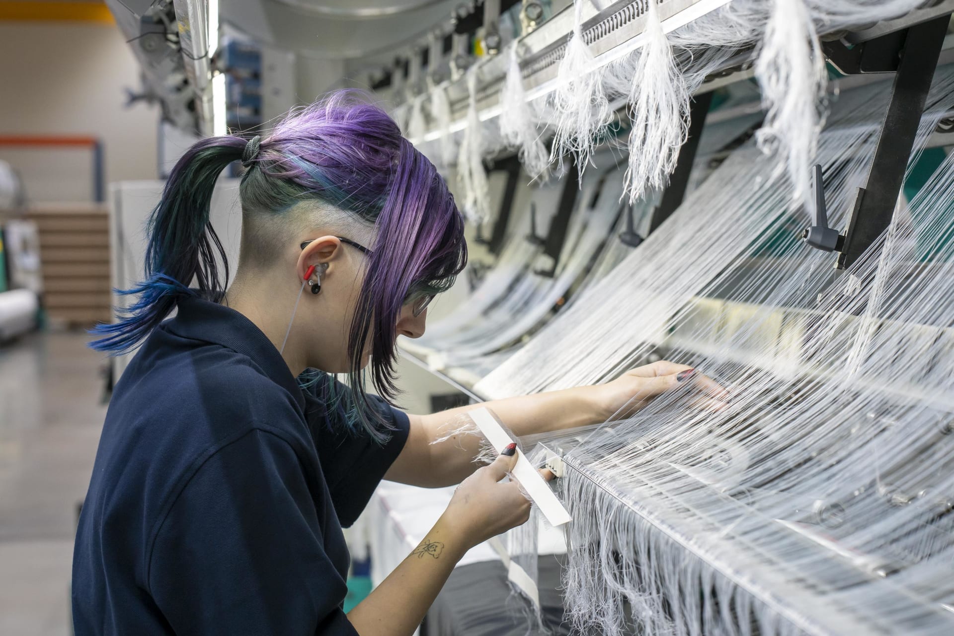 Bedienung moderner Textilmaschinen in einem sicheren Industriebetrieb – auch ohne Vorerfahrung möglich, dank strukturierter Einarbeitung.